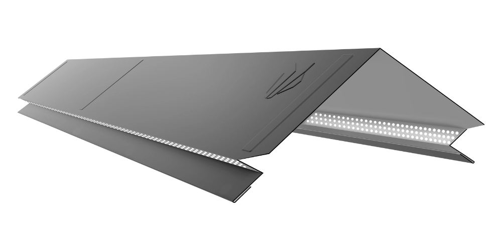 A szellőztetett 1 m hosszúságú gerincelem egy bádogos elem, amely a tetőfedést a gerinc helyén lezárja. A PANEL SERIES tetőfedéshez van dedikálva. A feladata a tető gerincének letömítése és esztétikus befejezése. A szellőztetett gerinclemezek legnagyobb előnye a homlok falon gyárilag készült perforáció, amely lehetővé teszi mind a tetőfedés, mind a padlástér szellőztetését további szellőzőléc használatának kiküszöbölésével.