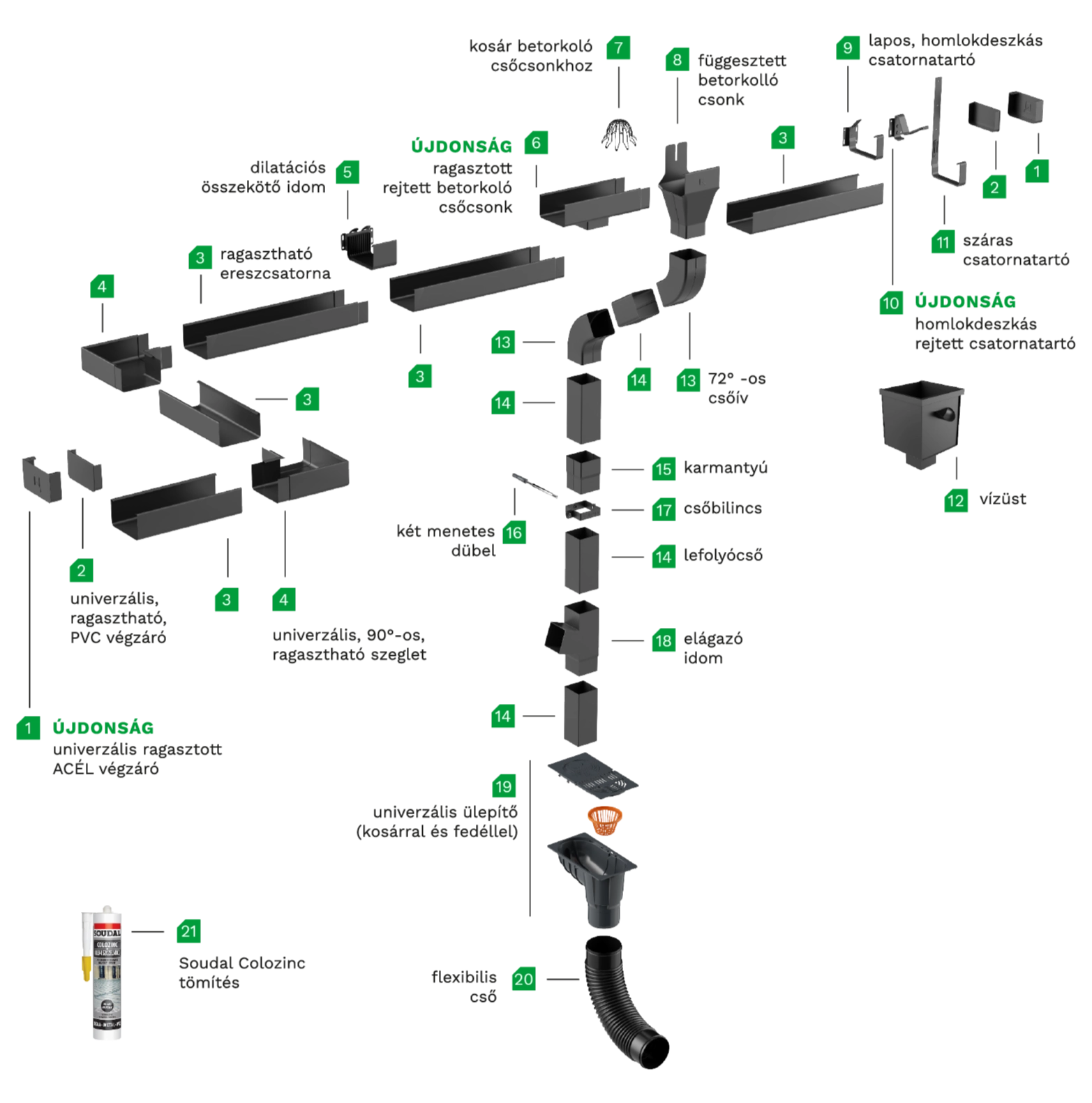 A Q STALYO PRO ereszcsatorna rendszert jó minőséget és a kedvező árat egyesíti magában, a legújabb építészeti trendeknek megfelelően. Modern és üzembiztos, jellemző tulajdonságai a minimalizmus és a szimmetria. A legjobb szakértőkkel folytatott együttműködésnek köszönhetően olyan ereszrendszert alkottunk, amely a legigényesebb ügyfelek igényeinek is megfelel.